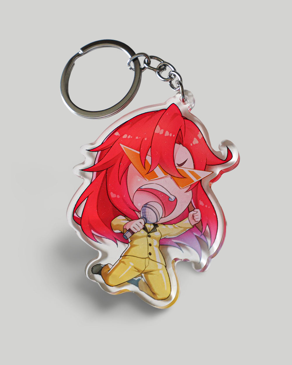 Chibi Chains! Our collectible limited production run of anime oc keychains that feature a uniquely themed artwork of Imouri-Chan released every month. This listing is for: Number 26, "Karaoke". Imouri-Chan is maybe a bit too into her performance, absolutely crushing it on the karaoke stage (...or so she thinks).