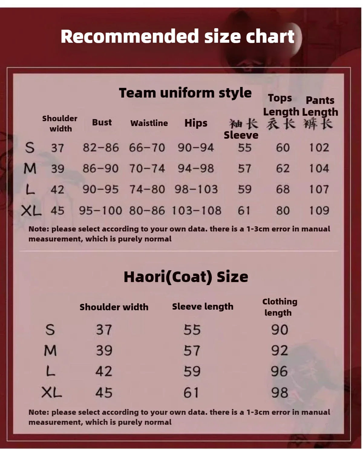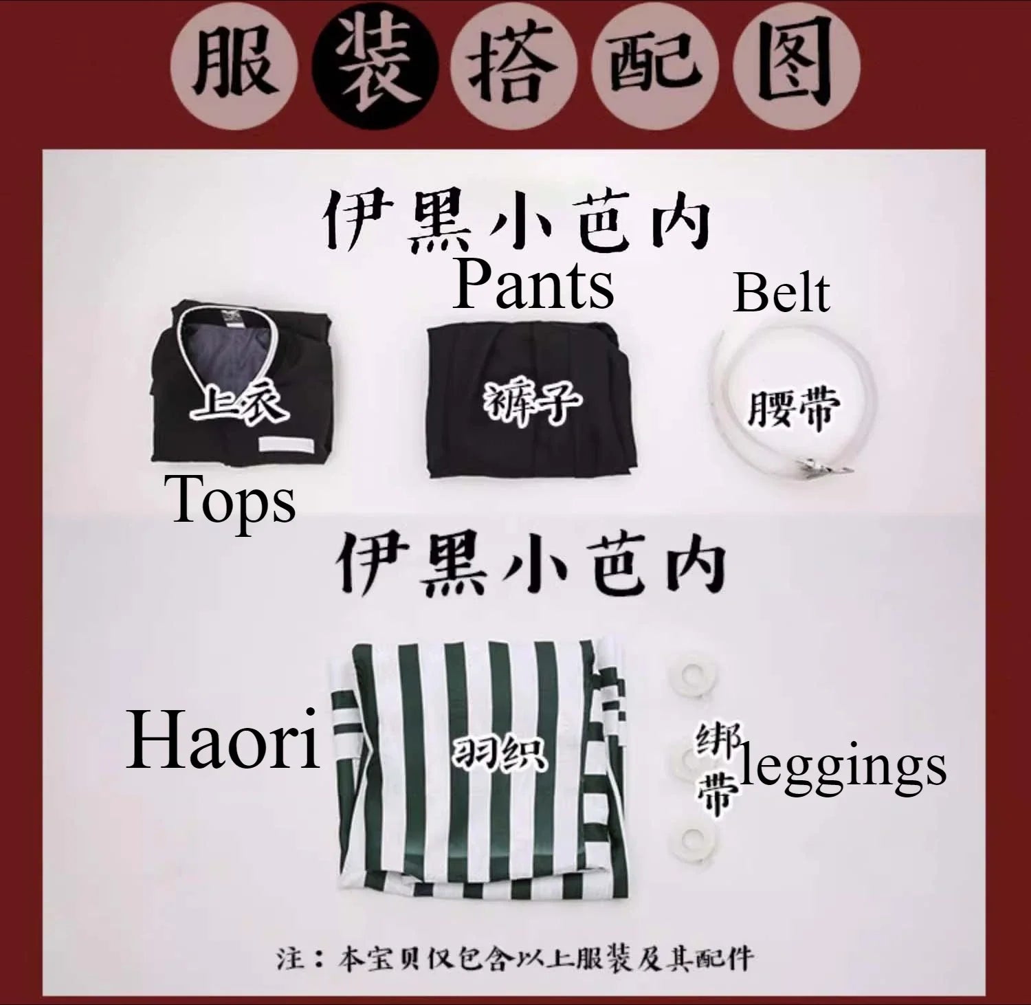 Includes haori uniform, trench coat, pants, wig, and mask