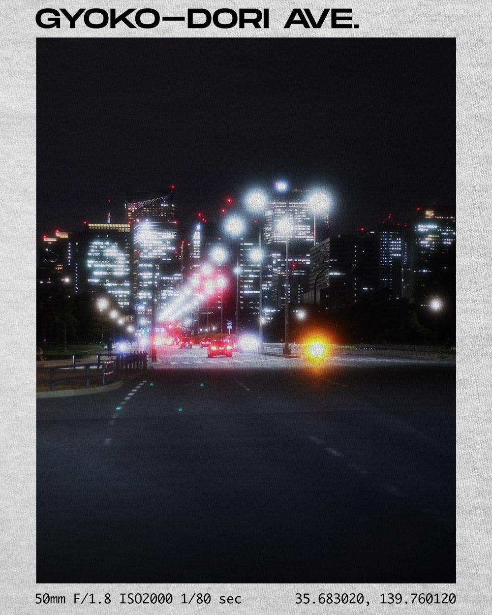 "Gyoki-Dori Ave." from the Imouri Japan line of t-shirts featuring a favorited collection of unique Japanese landscape and anime-like aesthetic scenery photographs personally captured through the lens of Imouri Founder, Ryan, in his travels across the country, Summer of 2024. The coordinates at the bottom of the back design mark the exact location at which each shot was taken, so you can hopefully visit to experience the exact view yourself one day.