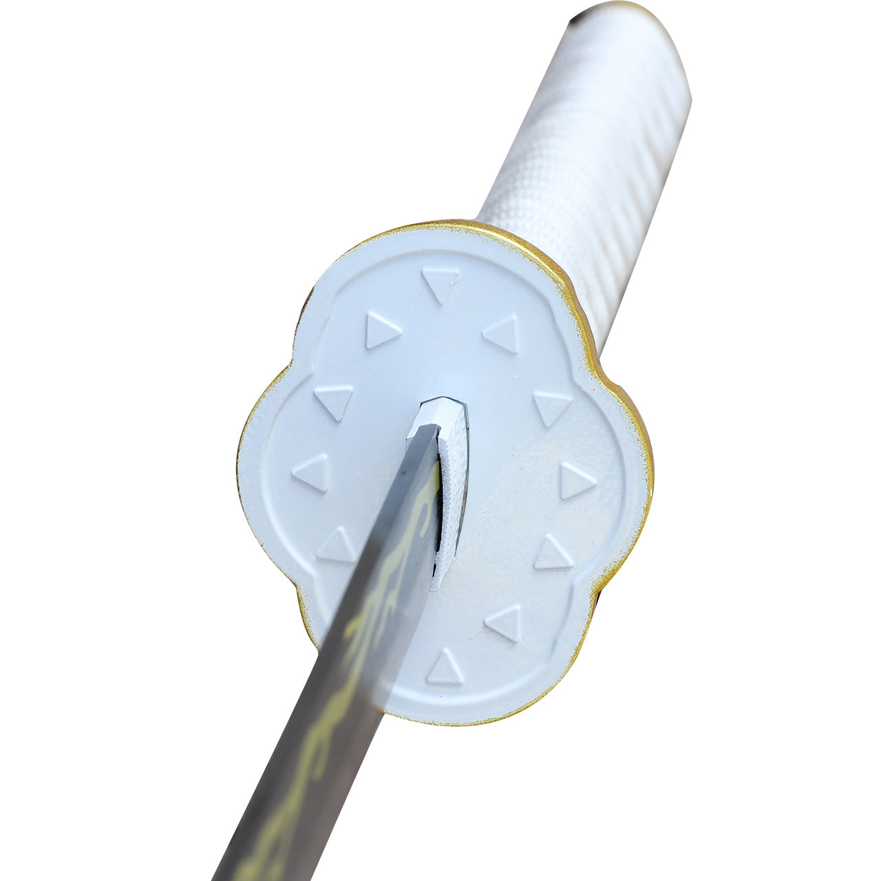 Steel hand guard & pommel with elegant white-and-gold detailing